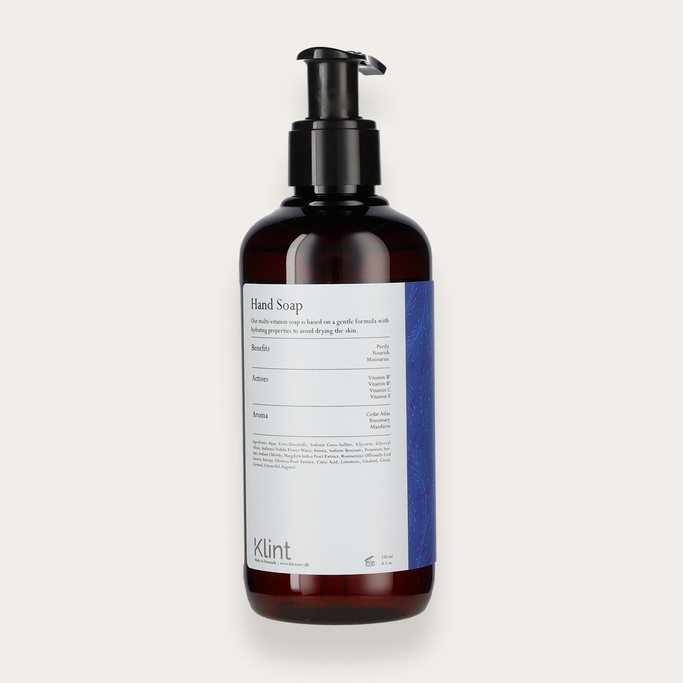 Håndsæben er 100% vegansk og fri for silikoner, syntetiske kemikalier (phthalater), petroleumsbaserede ingredienser (PEG'er), parabener og kunstige farver.